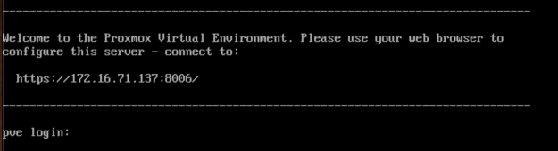 When the installation is done, the machine reboots. A console appears, showing a URL to connect to, as shown below.