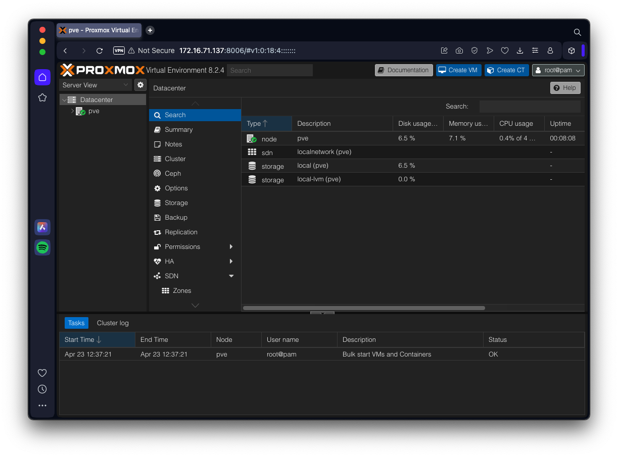 Log into proxmox web interface: https://:8006 Create SDN config (Datacenter --> SDN):
