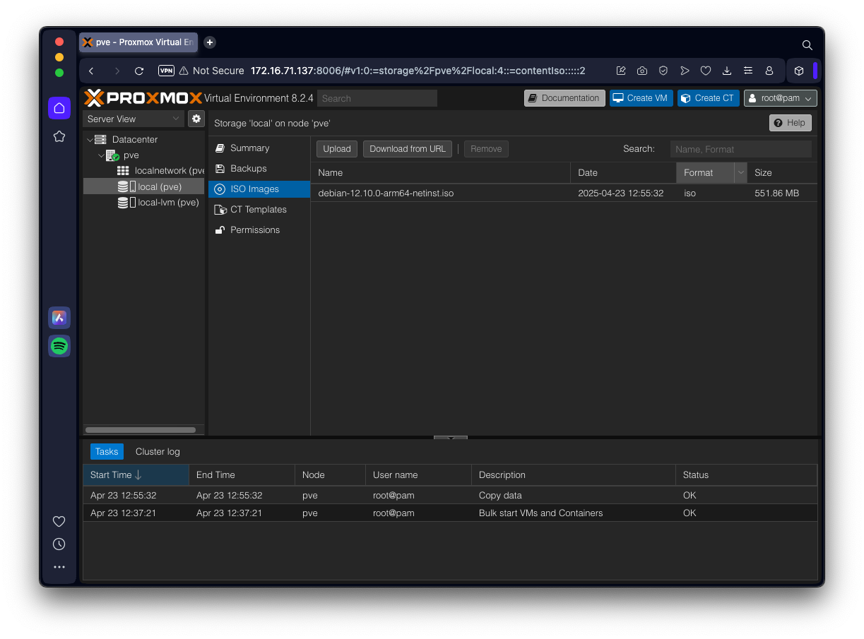 On my ARM system, I used the debian-12.10.0-arm64-netinst.iso file.