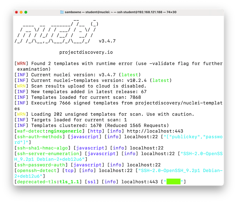 On your Linux machine, execute the commands below.The "-es info,low" switch tells Nuclei not to bother with unimportant findings.
