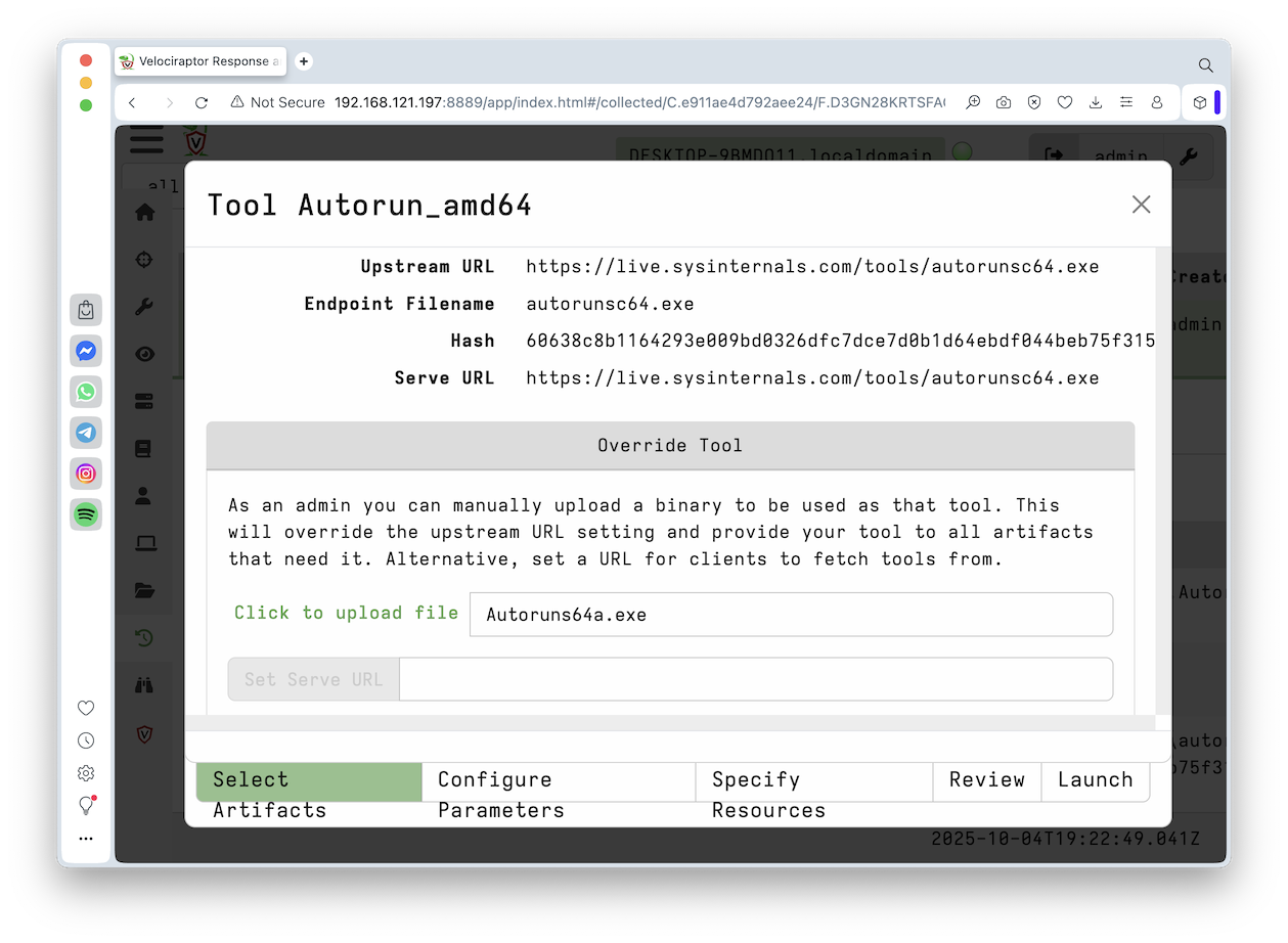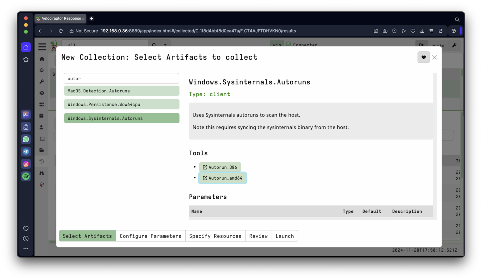 Download Autoruns.zip. Unzip it. Inside find the autorunsc64a.exe file.When you see the Velociraptor image shown above this box, on the right side, under Tools, click Autorun_amd64.