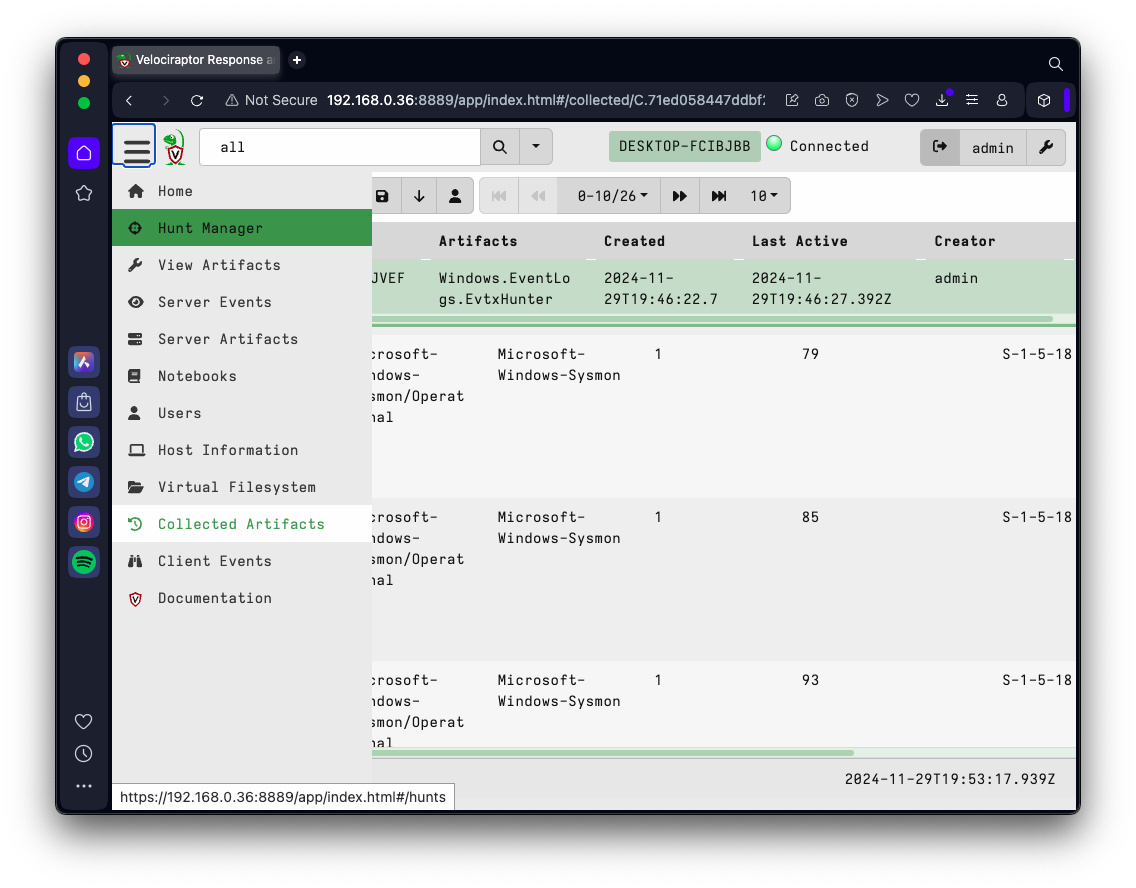 If you are using Windows on ARM (a Mac M1 or later host), you need to manually install sysmon.At the top right of the Velociraptor page, click the green button labelled DESKTOP.