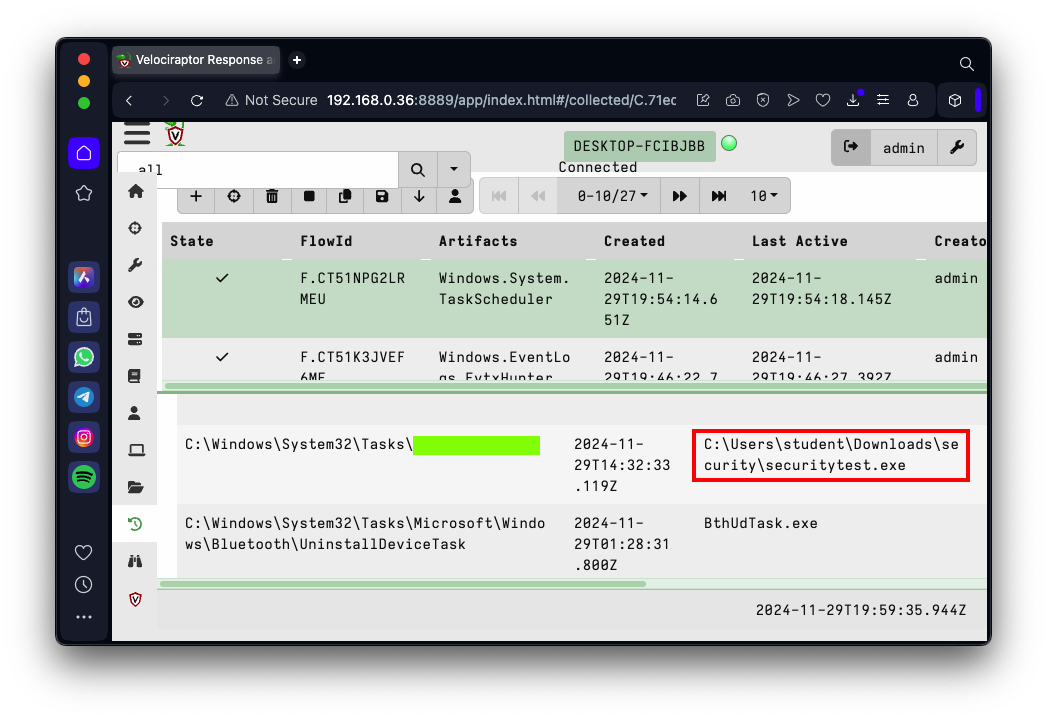 Launch this collector, with no changes to the parameters:Windows.System.TaskSchedulerIn the Command column, find the beaconing command, outlined in red in the image below.The flag is covered by a green rectangle in the image below.