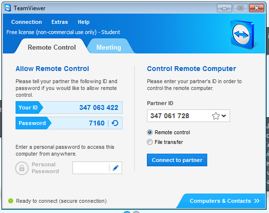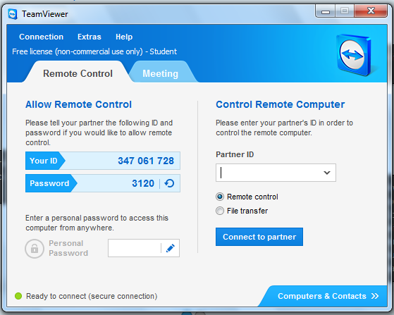 Double-click the installer and install the software with the default options. When it asks "How do you want to use TeamViewer?", select "personal / non-commercial use".