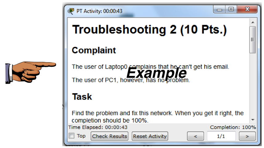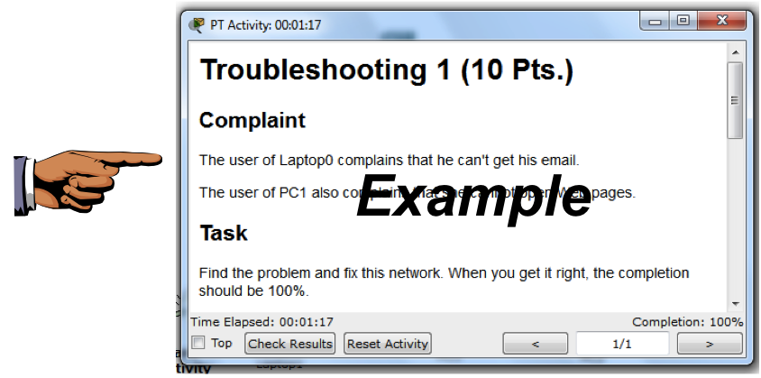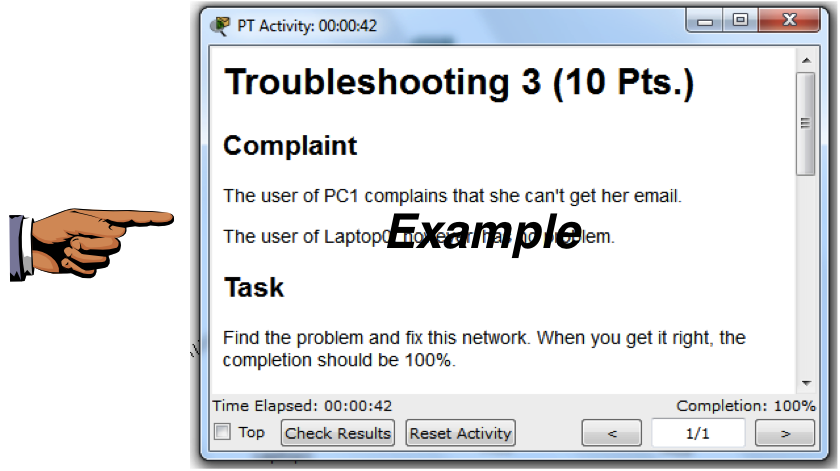 Find the problem and fix it. When you are done, you should have a Completion of 100%, as shown below.