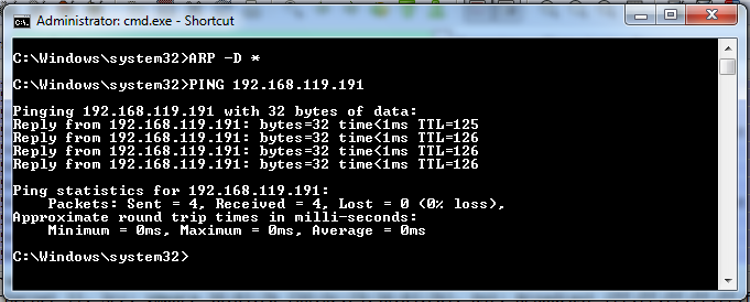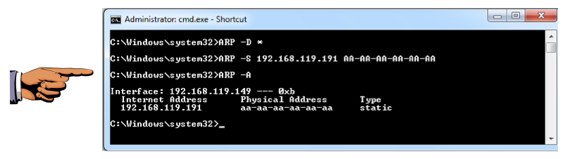 ARP -S 192.168.119.191 AA-AA-AA-AA-AA-AA