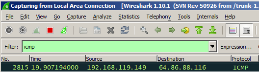Scroll up if necessary, and find an ICMP Echo (ping) request from the SCANNER IP address, as shown below.