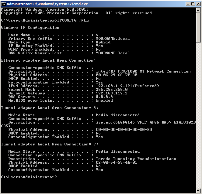 There are extra adapters below the real one in the output, such as "Tunnel adapter Local Area Connection* 8"--these are virtual adapter Windows makes for IPv6 tunneling. Just ignore them.