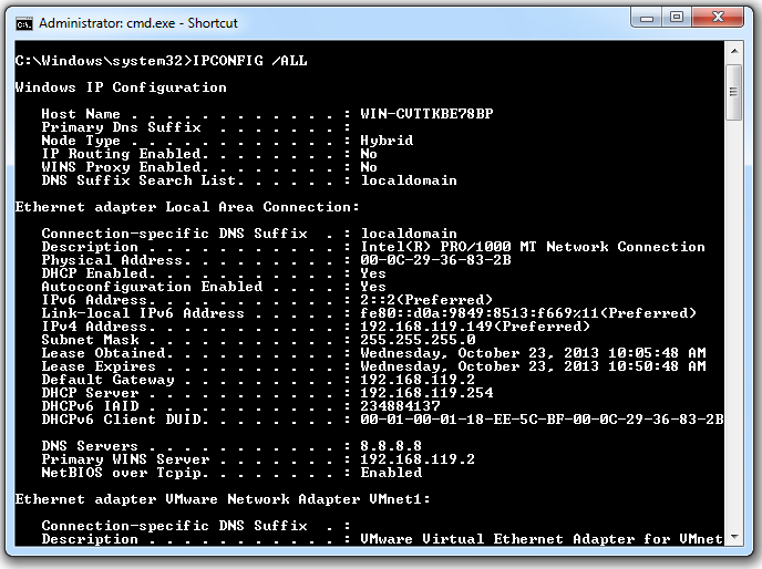 There are extra adapters below the real one in the output, such as "VMwnet" and "Tunnel" adapters. Just ignore them.