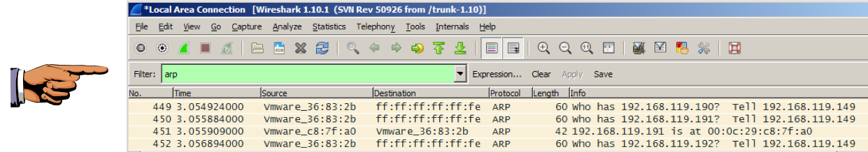 Find the ARP request for your TARGET's IP address, and its reply, as shown below.