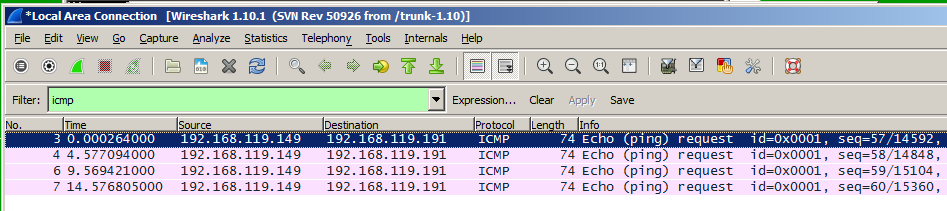 Scroll up if necessary, and find the four "Echo (ping) Request" packets shown below.
