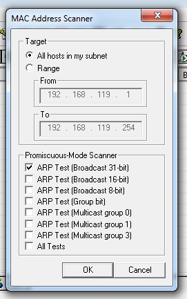 A "Mac Address Scanner" box pops up, as shown below.