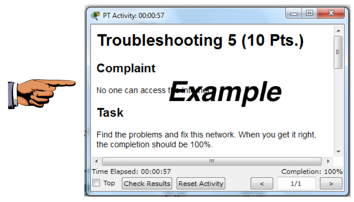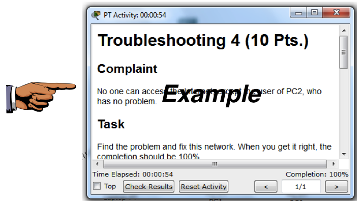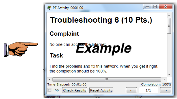 Find the problem and fix it. When you are done, you should have a Completion of 100%, as shown below.
