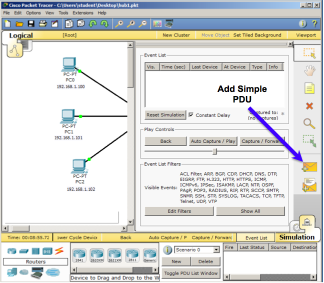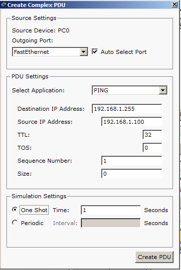 Click the "Add Simple PDU" button, as indicated in the figure above.