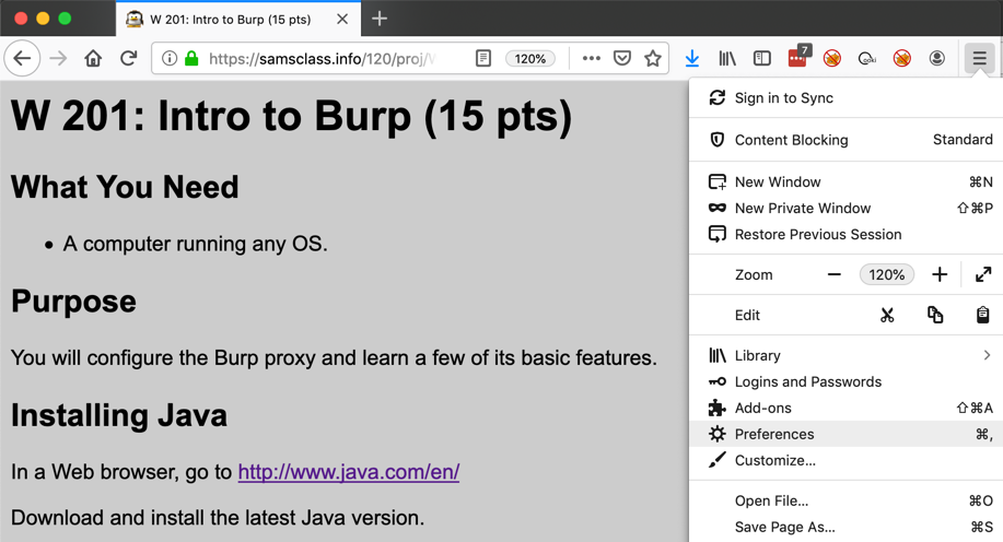To use Burp, you need to adjust the proxy settings on a browser on your computer. I recommend using Firefox for this purpose, so the other browsers like Chrome remain available for normal Internet use.