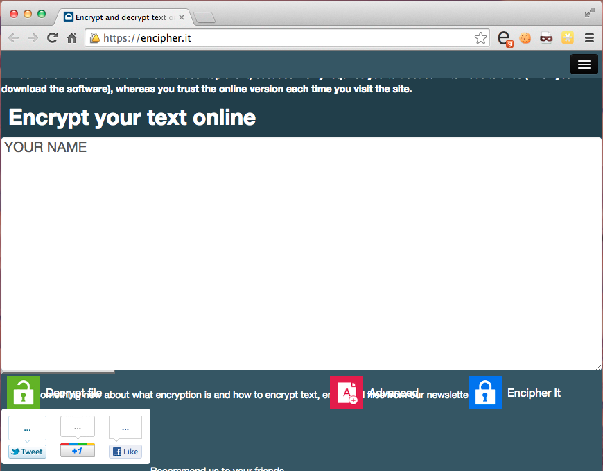 In the "Encrypt your text online" section, type YOUR NAME, as shown below.