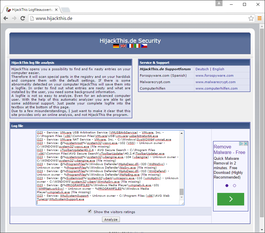 In the hijackthis.de page, at the bottom, click the Analyze button.