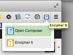 On the upper right of the Chrome window, click the "Encipher It" icon, which looks like a padlock. Two choices appear, as shown below: "Open Composer" and "Encipher It". Click "Encipher It".