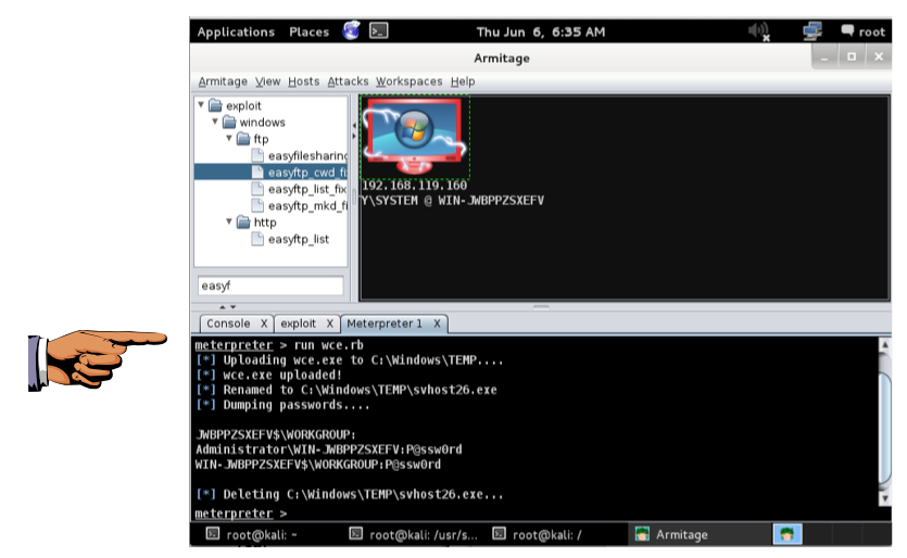 You will use Armitage to take control of a Windows target remotely and steal the password over the network.