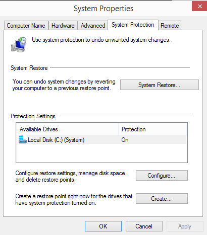In the "Create a restore point" box, enter a name of "Your Name - Before ad-blocking" and click the Create button. Wait while the restore point is created.