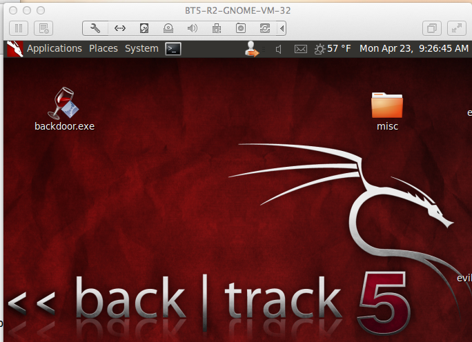 Drag the backdoor.exe file out of the virtual machine and drop it on the host machine's desktop.