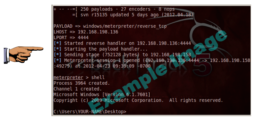 You should see a session open, and a "meterpreter>" prompt, as shown below: