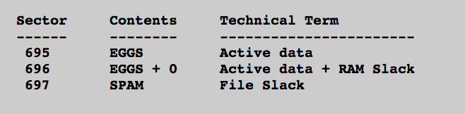 As you can see, the leftover space at the end of the sector contains zeroes, not leftover "SPAM" data.