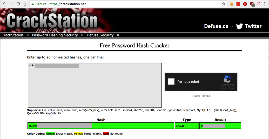 Paste in the hash. On the right side, fill in the CAPTCHA and click the "Crack Hashes" button.