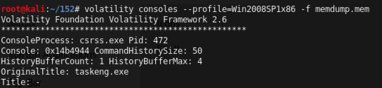 volatility consoles --profile=Win2008SP1x86 -f memdump.mem
