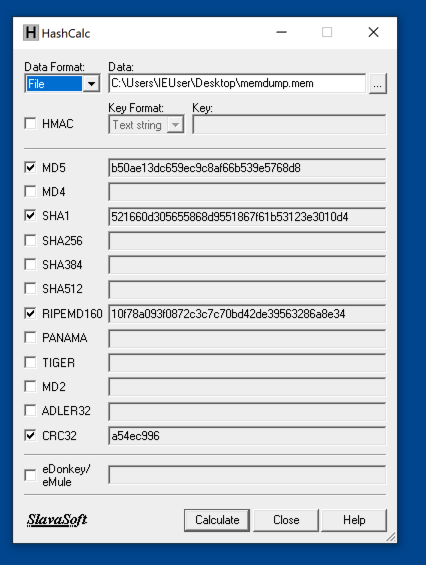 Use Hashcalc to verify the hash of the file. Your hash values should match the image below.