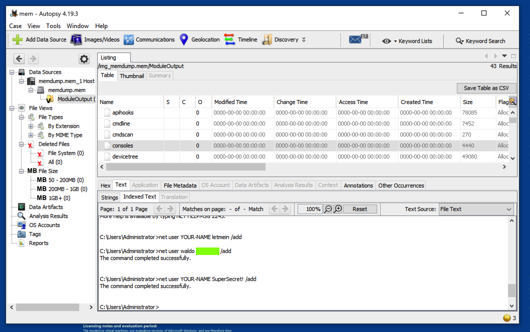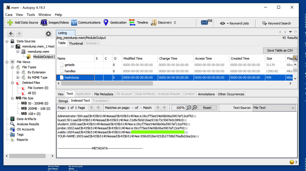 In the hashdump section, find Waldo's password hash, covered by a green rectangle in the image below.
