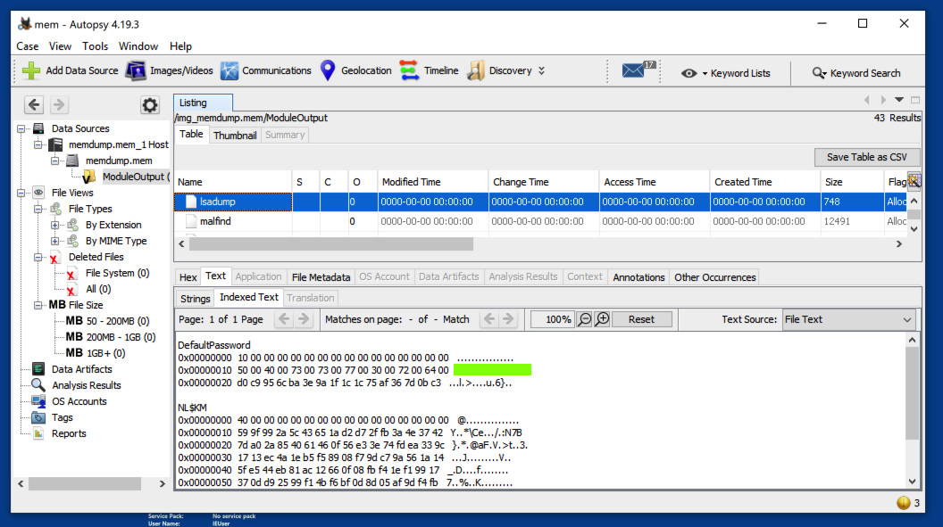 In the lsadump section, find the default password, covered by a green rectangle in the image below.
