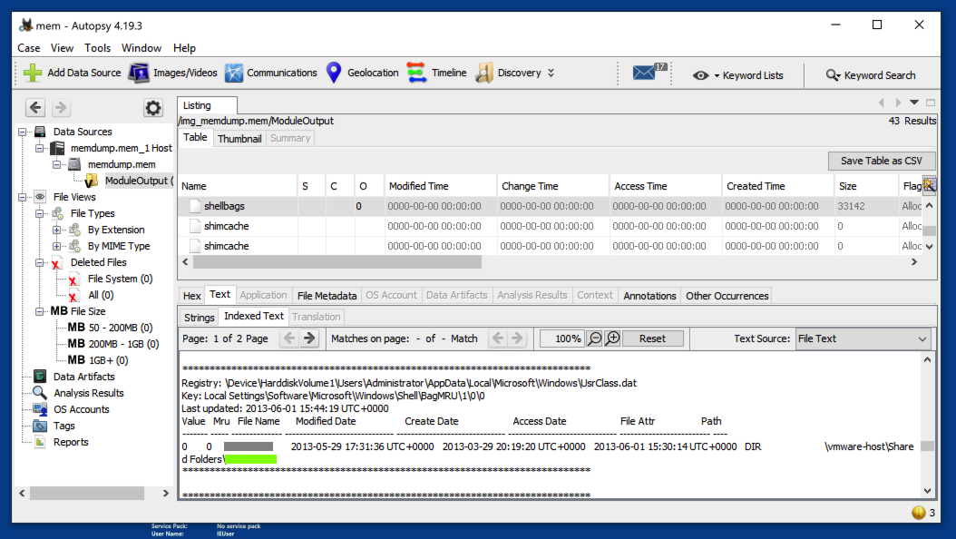 In the shellbags section, find the name of the shared folder this machine connected to, covered by a green rectangle in the image below.