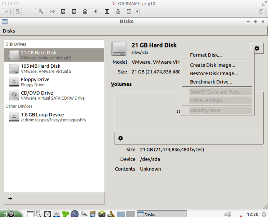 In the left pane, click "21 GB Hard Disk". This is the new, empty drive which will be used to capture the image.