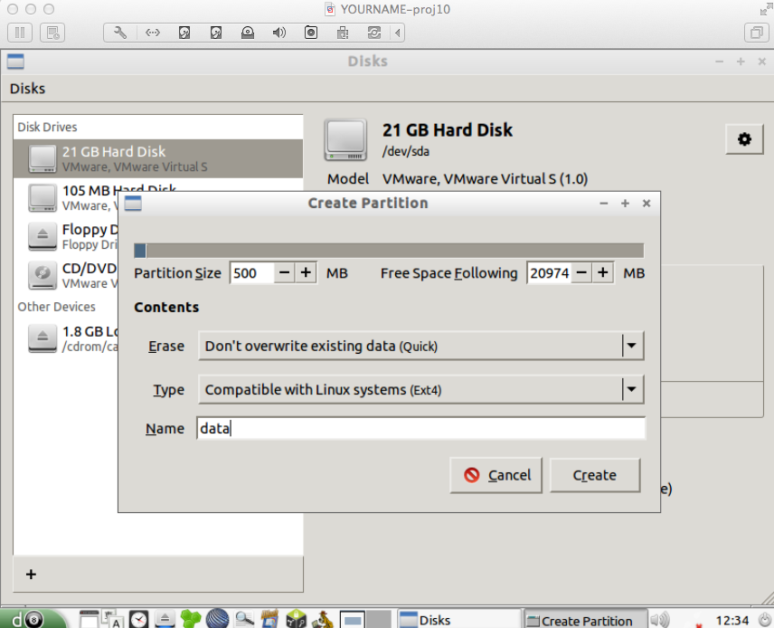 In the "Name the Virtual Machine" box, enter a Virtual machine name of YOURNAME-Proj10.