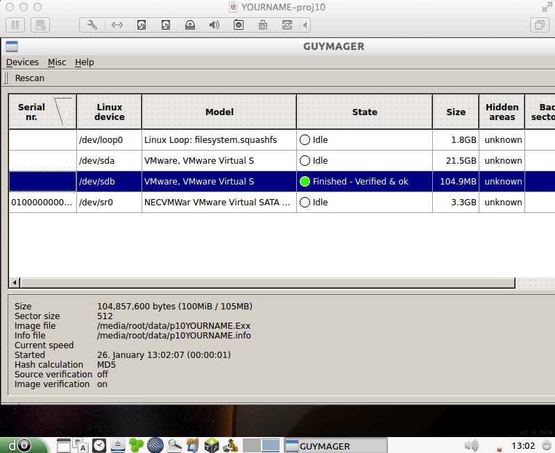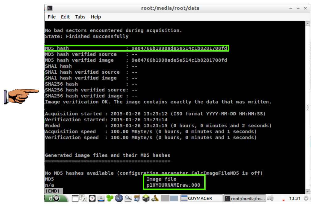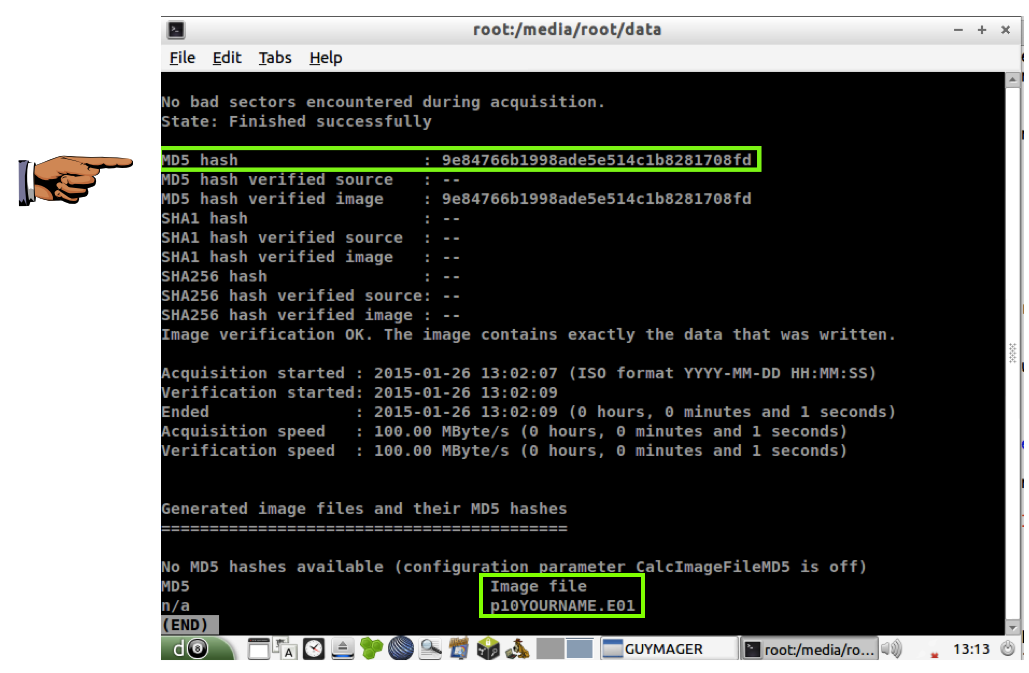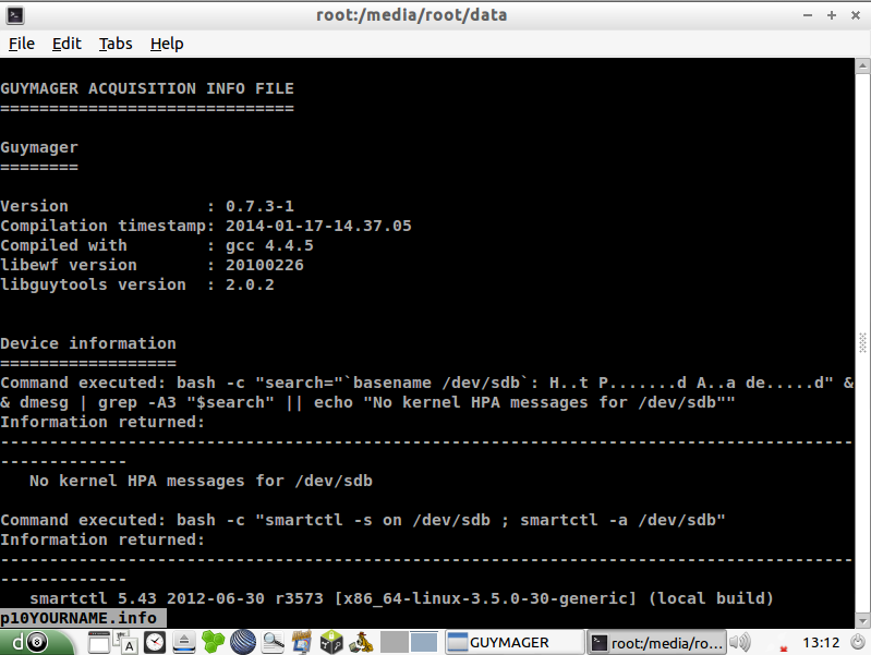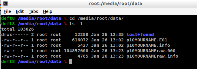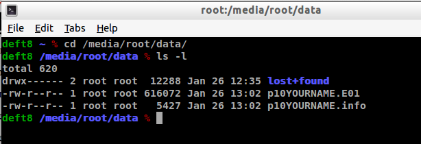 The .info file contains information about the .E01 file. In the Terminal window, execute this command: