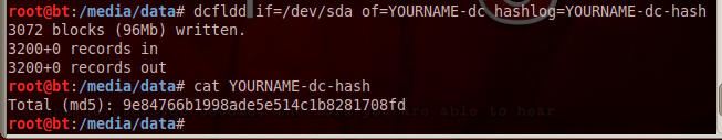 dcfldd if=/dev/sda of=YOURNAME-dc hashlog=YOURNAME-dc-hash