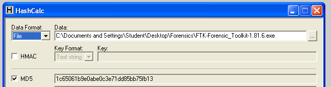 Drag the "FTK-Forensic_Toolkit-1.81.6.exe" file and drop it on the Hashcalc window.