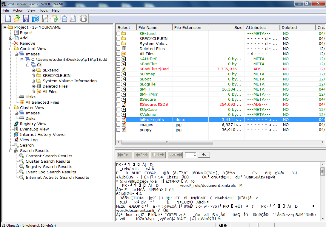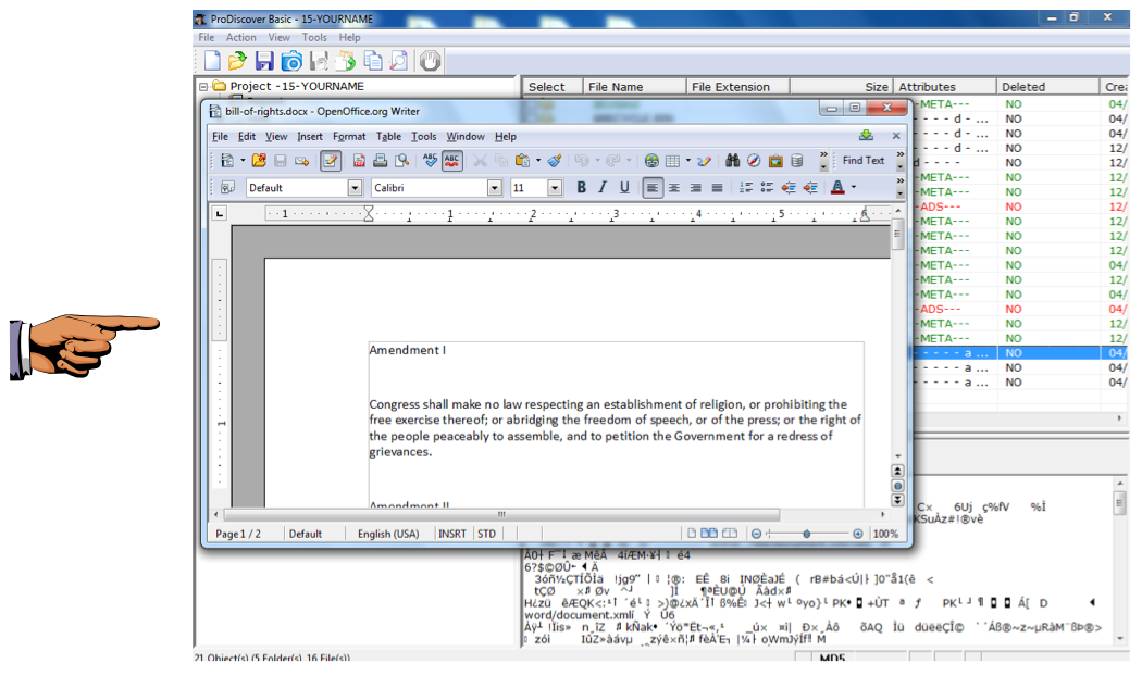 In the upper right-pane of ProDiscover, double-click bill-of-rights.