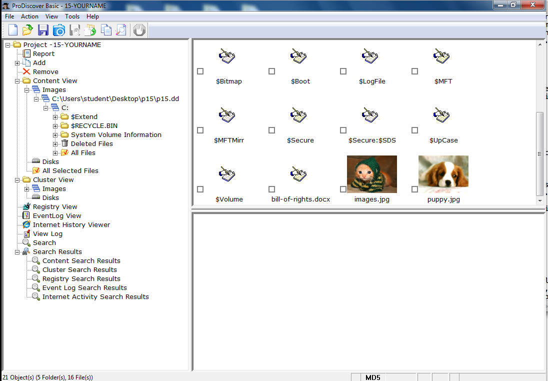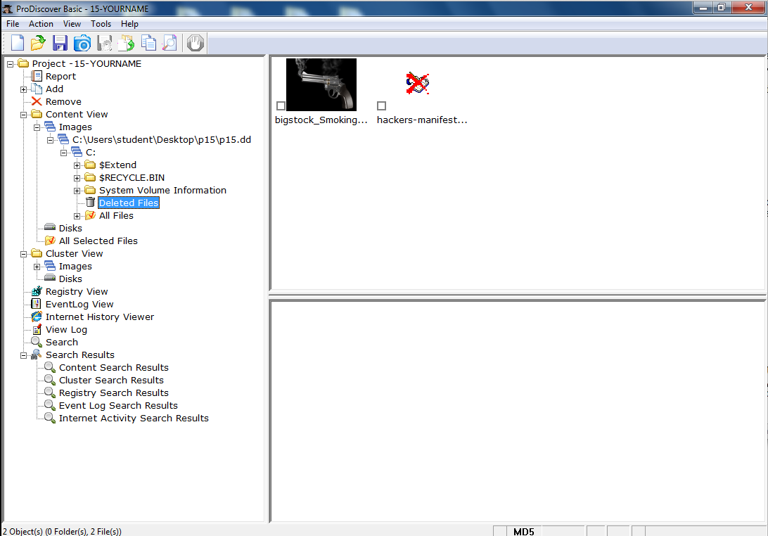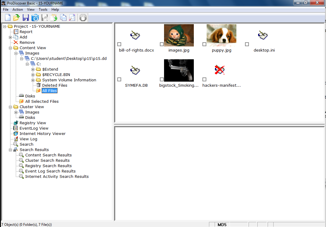 This is probably the friendliest view in ProDiscover. As shown below, both active and recovered files are shown as convenient icons, as shown below.