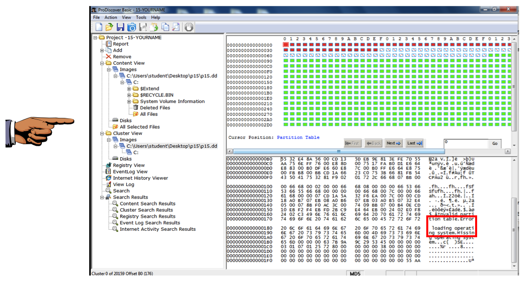 Click the first red rectangle again to select Cluster 0. This is the first cluster on the disk--the Master Boot Record.