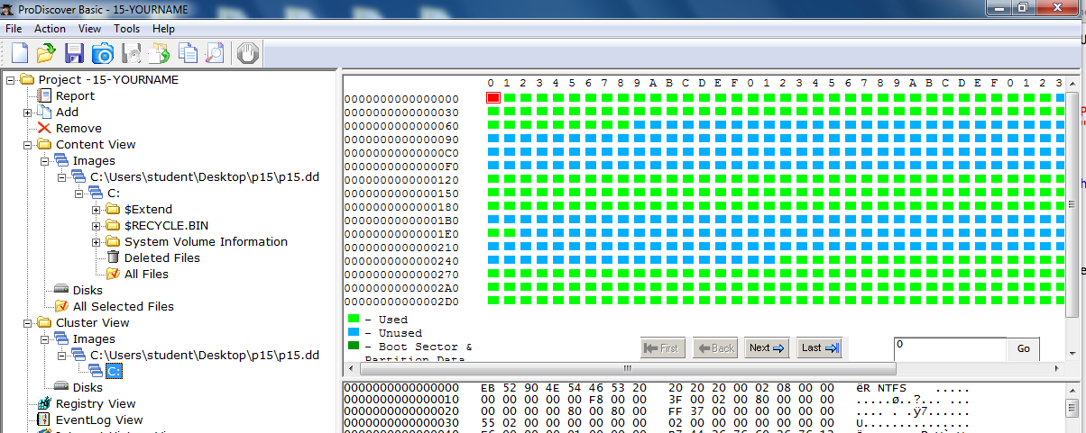 Notice the colors: the green clusters are "Used"--that is, they contain active data. The blue clusters are "Unused" and may contain latent data.