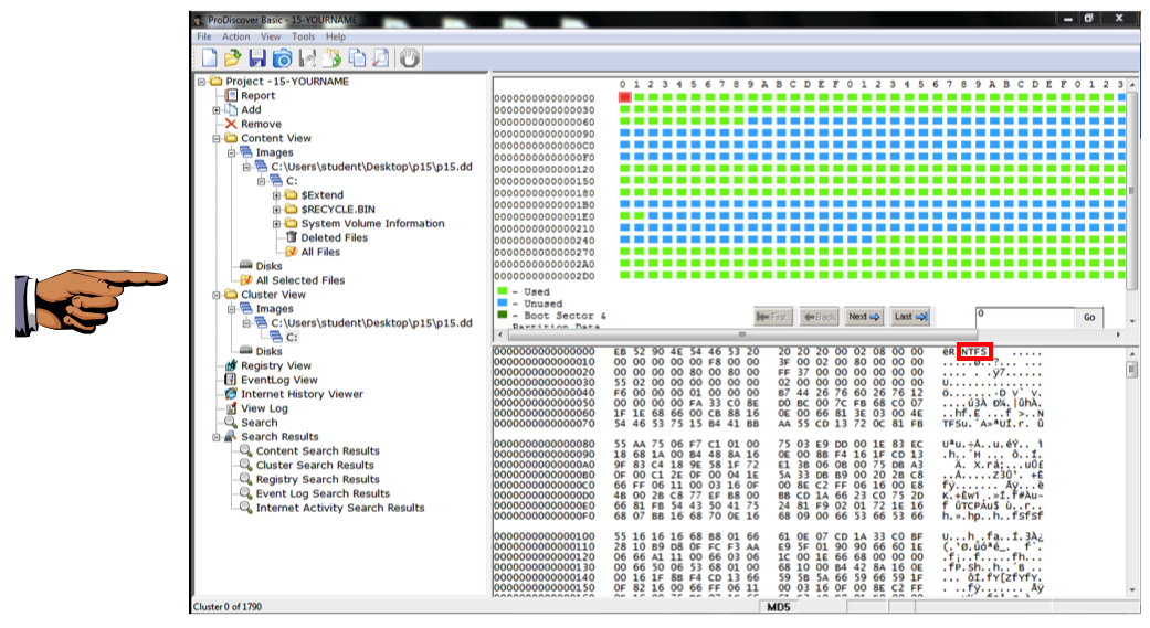 Click the first red rectangle again to select Cluster 0. This is the first cluster on the partition--the Partition Boot Sector.