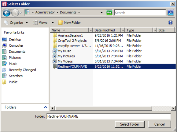 Double-click the Redline-YOURNAME folder to open it, as shown below, and click the "Select Folder" button.