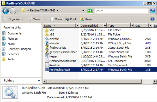 Double-click the RunRedlineAudit file, as shown below.