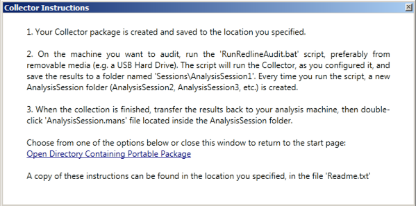 When the collector is prepared, the box shown below appears. Read it and close it. Then close Redline.