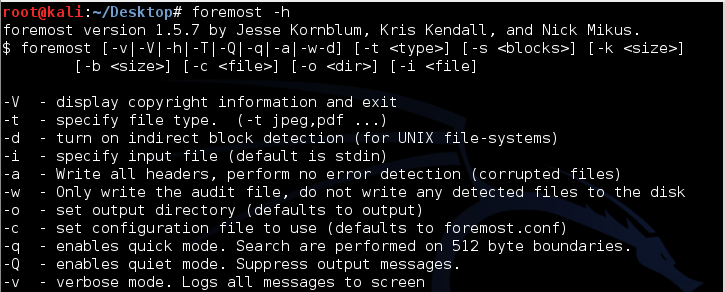 And it's outrageously easy to use. Simply invoking Foremost with no options looks for all possible file types and puts the files it finds in a folder named "output".