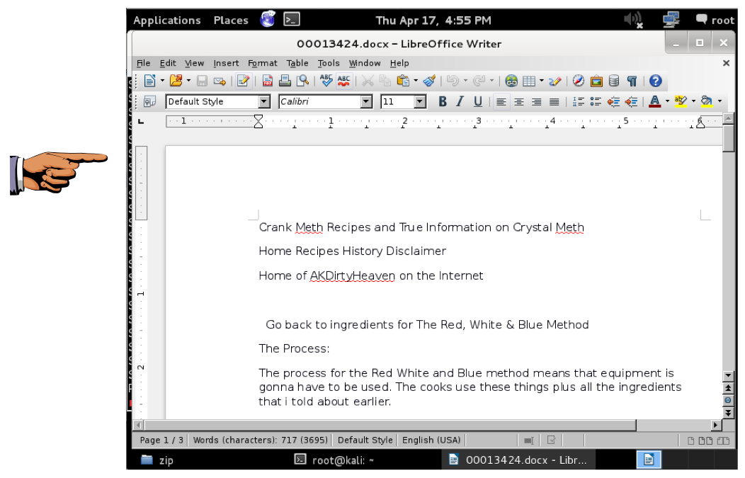 Find the third file--a recipe for making Crank Meth, as shown below.