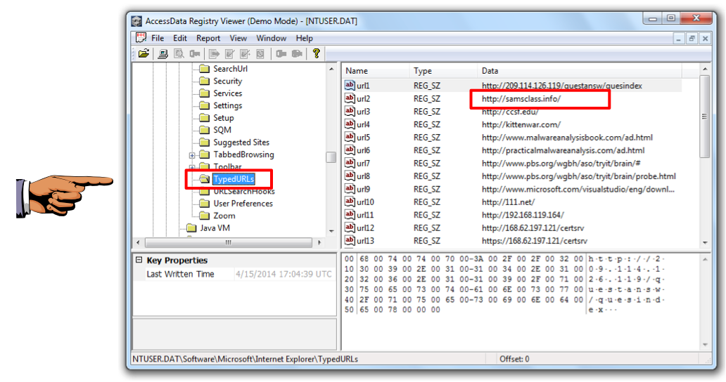 NTUSER.DAT\Software\Microsoft\Internet Explorer\TypedURLs