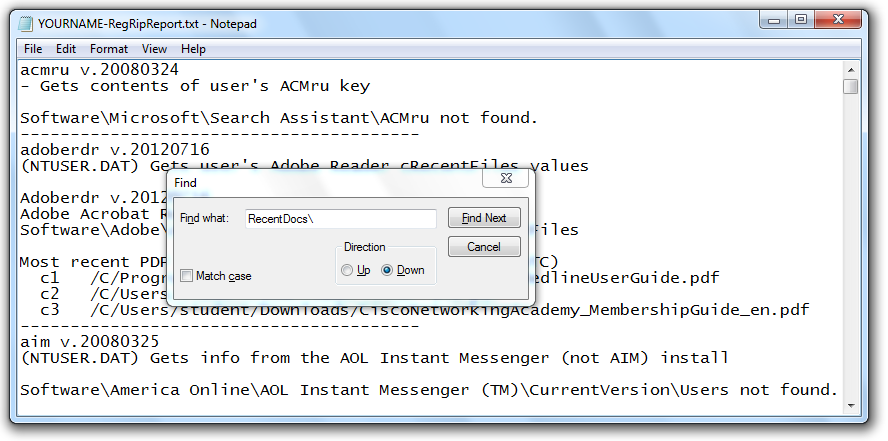 On your desktop, double-click the YOURNAME-RegRipReport file.